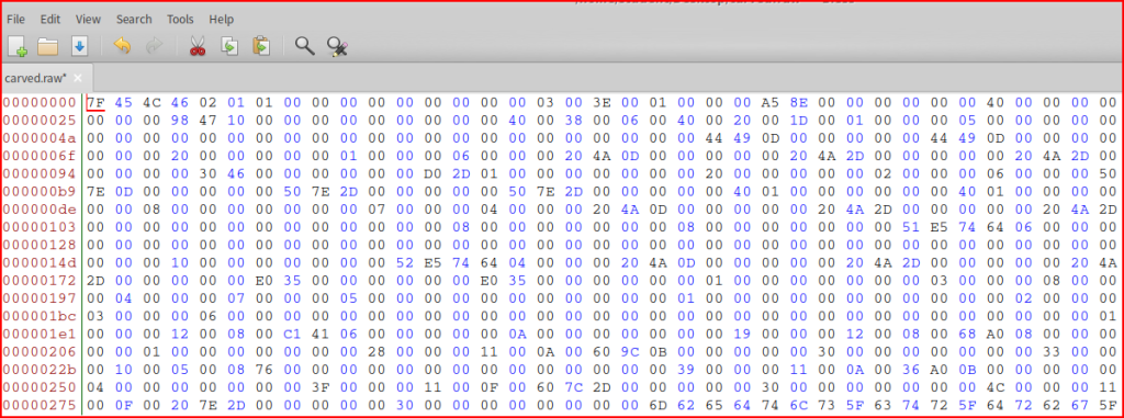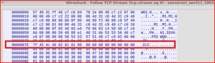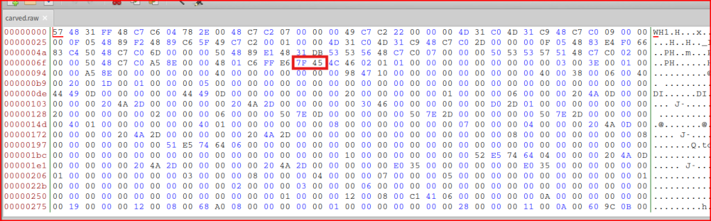 From our alert, I know that the executable starts at 7F 45: