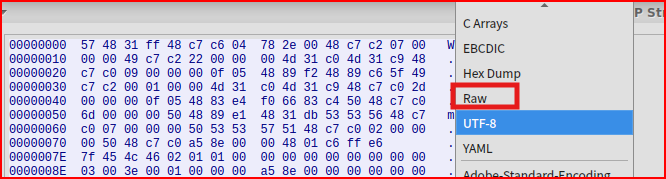 Nothing really sticks out looking at the payload. If i switch from ASCII to an Hex Dump: