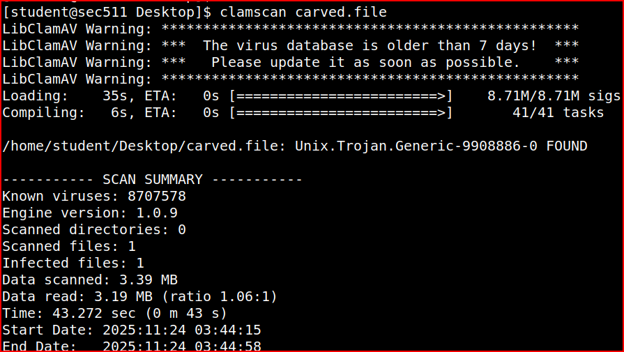 It is indeed a ELF file and I can scan it with clamscan: