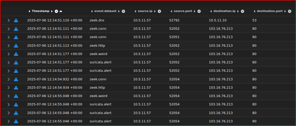 In this lab, I am looking at a client exploitation. A user has reported to the help desk that his PC started acting funny. This was after he clicked on a suspicious link. This was then escalated to the security team. The help desk mentioned that the PC IP address is 10.5.11.57. This happened on July 6th, 2025.